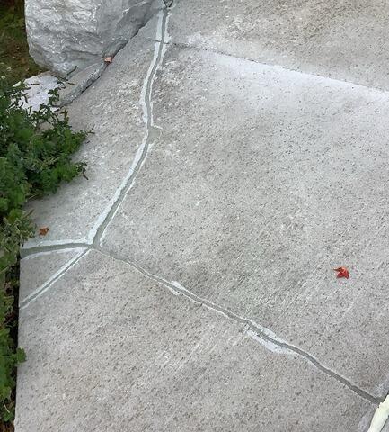Once the slabs were properly aligned, we carefully filled and sealed each crack with our weather-resistant sealant, bringing the patio back together as a single, cohesive surface. This added layer of protection helps keep moisture out and is designed to stand up to Southwestern Ontario’s freeze-thaw cycles.